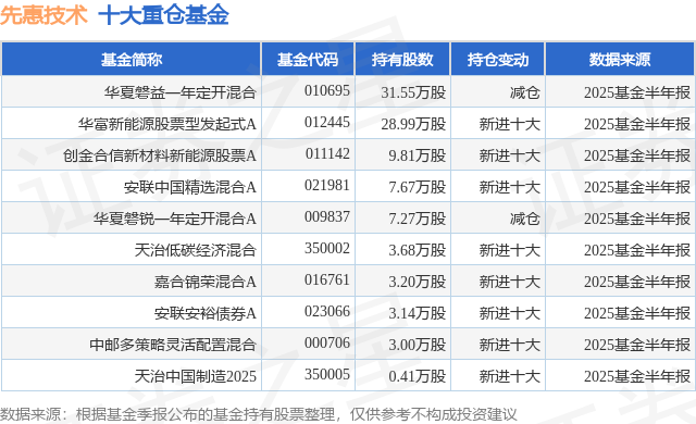 根据2025基金半年报公募基金重仓股数据,重仓该股的公募基金共10家,其中持有数量最多的公募基金为华夏基金的华夏磐益一年定开混合。华夏磐益一年定开混合目前规模为4.42亿元,最新净值1.4645(10月9日),较上一交易日上涨0.18%,近一年上涨46.63%。该公募基金现任基金经理为张城源。张城源在任的基金产品包括:华夏磐泰混合(LOF)A,管理时间为2016年12月26日至今,期间收益率为78.7%;华夏磐利一年定开混合A,管理时间为2020年7月29日至今,期间收益率为89.3%;华夏磐锐一年定开混合A,管理时间为2020年12月22日至今,期间收益率为81.32%;