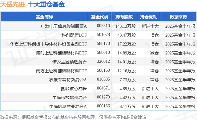根据2025基金半年报公募基金重仓股数据,重仓该股的公募基金共13家,其中持有数量最多的公募基金为广发基金的广发电子信息传媒股票A。广发电子信息传媒股票A目前规模为9.19亿元,最新净值3.2333(10月9日),较上一交易日上涨0.6%,近一年上涨47.37%。该公募基金现任基金经理为冯骋。