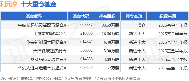 重仓利元亨的公募基金请见下表:
