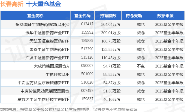 重仓长春高新的前十大公募基金请见下表:
