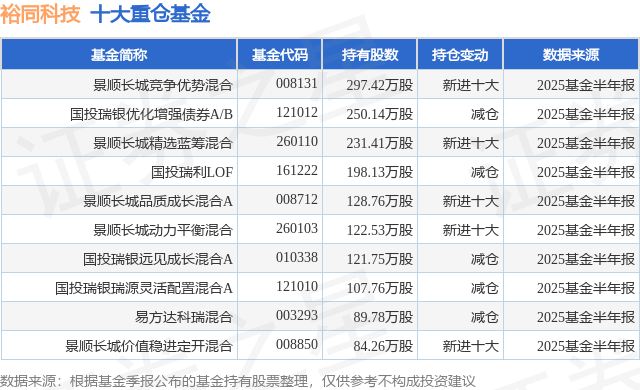 根据2025基金半年报公募基金重仓股数据,重仓该股的公募基金共22家,其中持有数量最多的公募基金为景顺长城基金的景顺长城竞争优势混合。景顺长城竞争优势混合目前规模为20.87亿元,最新净值0.9175(10月9日),较上一交易日下跌0.11%,近一年上涨11.86%。该公募基金现任基金经理为刘苏。刘苏在任的基金产品包括:景顺长城动力平衡混合,管理时间为2015年9月29日至今,期间收益率为140.4%;景顺长城品质成长混合A,管理时间为2020年1月3日至今,期间收益率为30.31%;景顺长城消费精选混合A,管理时间为2020年9月24日至今,期间收益率为-25.53%。