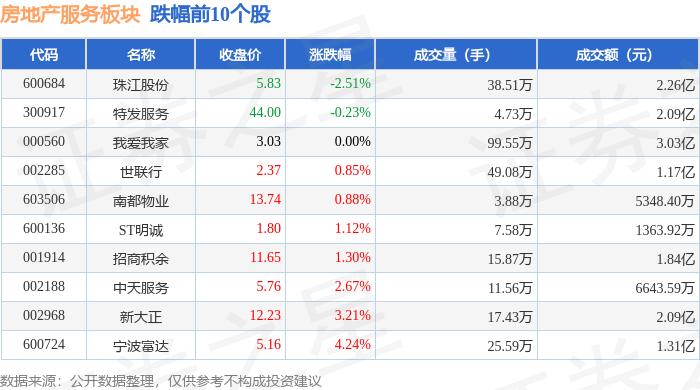 证券之星消息,10月10日房地产服务板块较上一交易日上涨1.18%,皇庭国际领涨。当日上证指数报收于3897.03,下跌0.94%。深证成指报收于13355.42,下跌2.7%。房地产服务板块个股涨跌见下表:
