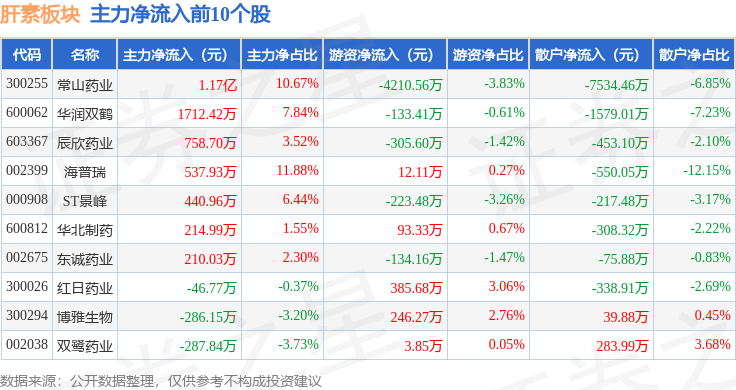 从资金流向上来看,当日肝素板块主力资金净流入944.8万元,游资资金净流出355.26万元,散户资金净流出589.54万元。肝素板块个股资金流向见下表: