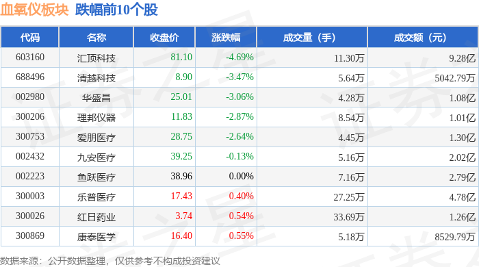证券之星消息,10月10日血氧仪板块较上一交易日下跌1.05%,汇顶科技领跌。当日上证指数报收于3897.03,下跌0.94%。深证成指报收于13355.42,下跌2.7%。血氧仪板块个股涨跌见下表: