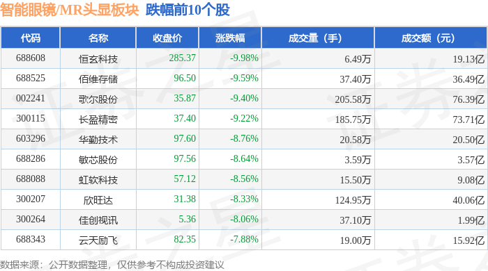 证券之星消息,10月10日智能眼镜/MR头显板块较上一交易日下跌4.06%,恒玄科技领跌。当日上证指数报收于3897.03,下跌0.94%。深证成指报收于13355.42,下跌2.7%。智能眼镜/MR头显板块个股涨跌见下表:
