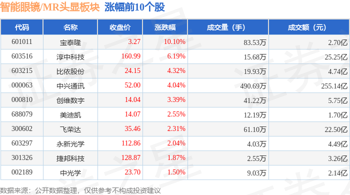 从资金流向上来看,当日智能眼镜/MR头显板块主力资金净流出131.67亿元,游资资金净流入43.67亿元,散户资金净流入88.0亿元。智能眼镜/MR头显板块个股资金流向见下表: