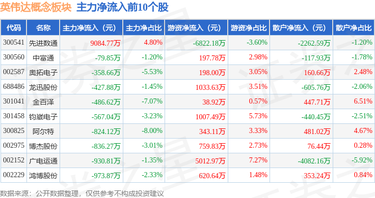从资金流向上来看,当日英伟达概念板块主力资金净流出60.46亿元,游资资金净流入17.59亿元,散户资金净流入42.86亿元。英伟达概念板块个股资金流向见下表: