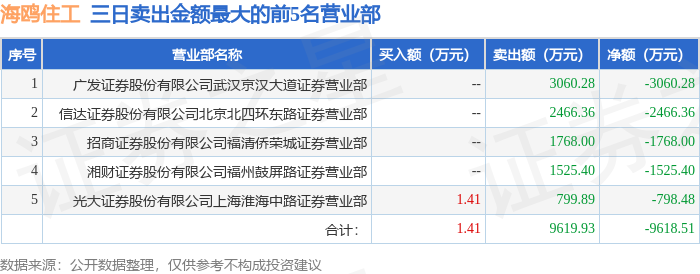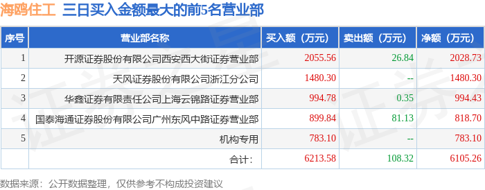 证券之星消息,沪深交易所2025年10月10日公布的交易公开信息显示,海鸥住工(002084)因连续三个交易日内,涨幅偏离值累计达到20%的证券登上龙虎榜。此次是近5个交易日内第1次上榜。