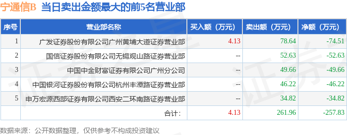 证券之星消息,沪深交易所2025年10月10日公布的交易公开信息显示,宁通信B(200468)因日跌幅偏离值达到7%的前5只证券登上龙虎榜。此次是近5个交易日内第2次上榜。