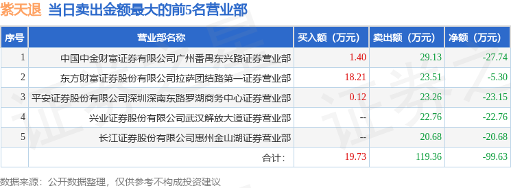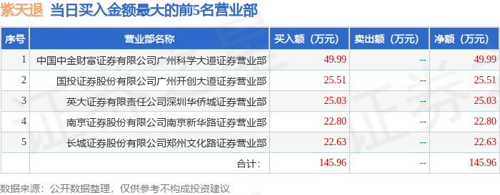 证券之星消息,沪深交易所2025年10月10日公布的交易公开信息显示,紫天退(300280)因退市整理期登上龙虎榜。此次是近5个交易日内第5次上榜。