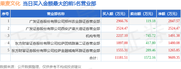 证券之星消息,沪深交易所2025年10月10日公布的交易公开信息显示,果麦文化(301052)因日跌幅达到15%的前5只证券,日换手率达到30%的前5只证券,连续三个交易日内,跌幅偏离值累计达到30%的证券登上龙虎榜。此次是近5个交易日内第2次上榜。