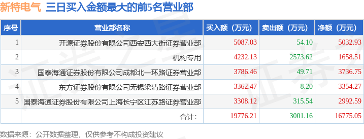 证券之星消息,沪深交易所2025年10月10日公布的交易公开信息显示,新特电气(301120)因日涨幅达到15%的前5只证券,连续三个交易日内,涨幅偏离值累计达到30%的证券登上龙虎榜。此次是近5个交易日内第1次上榜。