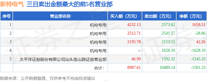 从龙虎榜公布的当日买卖数据来看,机构合计净卖出591.99万元。章盟主等知名游资榜上有名。(知名游资章盟主一般指国泰海通证券股份有限公司上海长宁区江苏路证券营业部席位,根据市场资料整理,仅供参考)