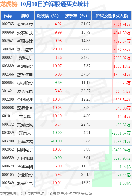 龙虎榜中有沪股通/深股通专用席位(北向资金)现身的个股共22家,其中蓝黛科技以净买入7471.91万元排名第一。详情见下表: