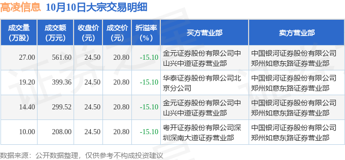 证券之星消息,10月10日高凌信息发生大宗交易,交易数据如下: