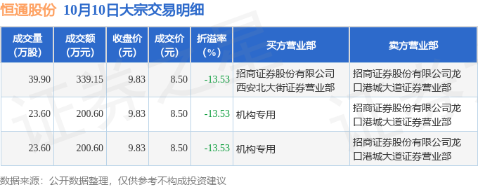 证券之星消息,10月10日恒通股份发生大宗交易,交易数据如下: