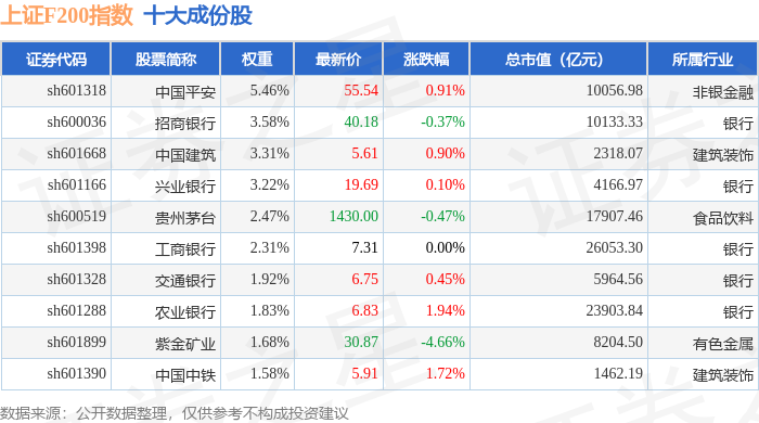 证券之星消息,10月10日,上证F200(000098)指数报收于5427.48点,涨0.14%,成交3331.92亿元,换手率0.9%。当日该指数成份股中,上涨的有129家,华新水泥以10.01%的涨幅领涨,下跌的有55家,华勤技术以8.76%的跌幅领跌。