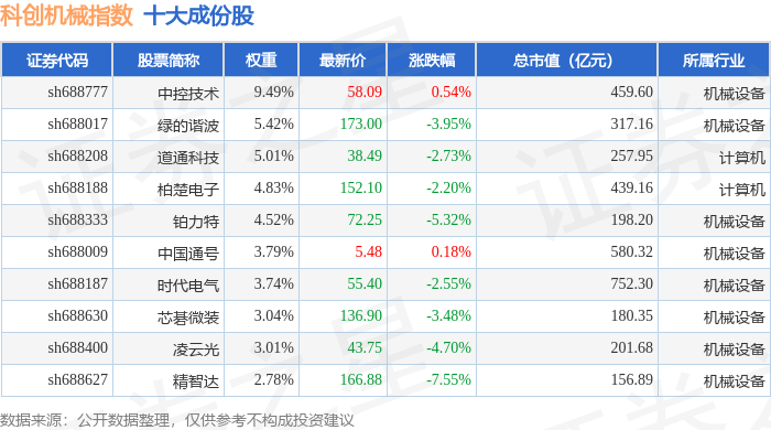 证券之星消息,10月10日,科创机械(000693)指数报收于1424.88点,跌2.69%,成交206.3亿元,换手率1.92%。当日该指数成份股中,上涨的有9家,中国电研以8.55%的涨幅领涨,下跌的有41家,利元亨以13.43%的跌幅领跌。