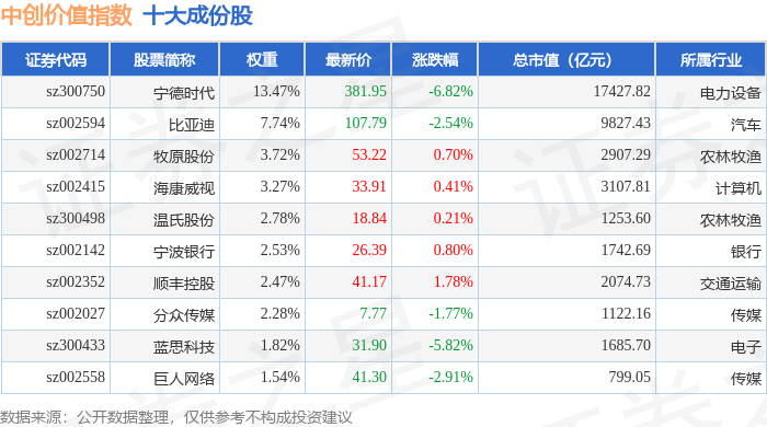 证券之星消息,10月10日,中创价值(399627)指数报收于2546.53点,跌1.89%,成交1336.65亿元,换手率1.9%。当日该指数成份股中,上涨的有95家,天康生物以7.52%的涨幅领涨,下跌的有68家,晶盛机电以10.58%的跌幅领跌。