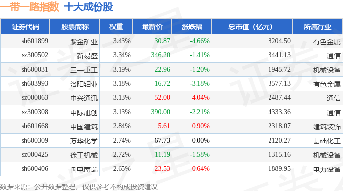 一带一路(399991)指数十大成份股详情如下: