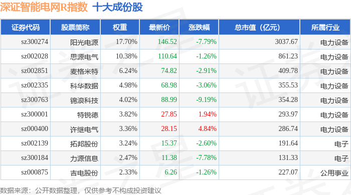 深证智能电网R(470054)指数十大成份股详情如下: