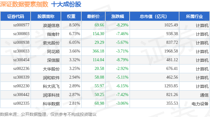 深证数据要素(970053)指数十大成份股详情如下: