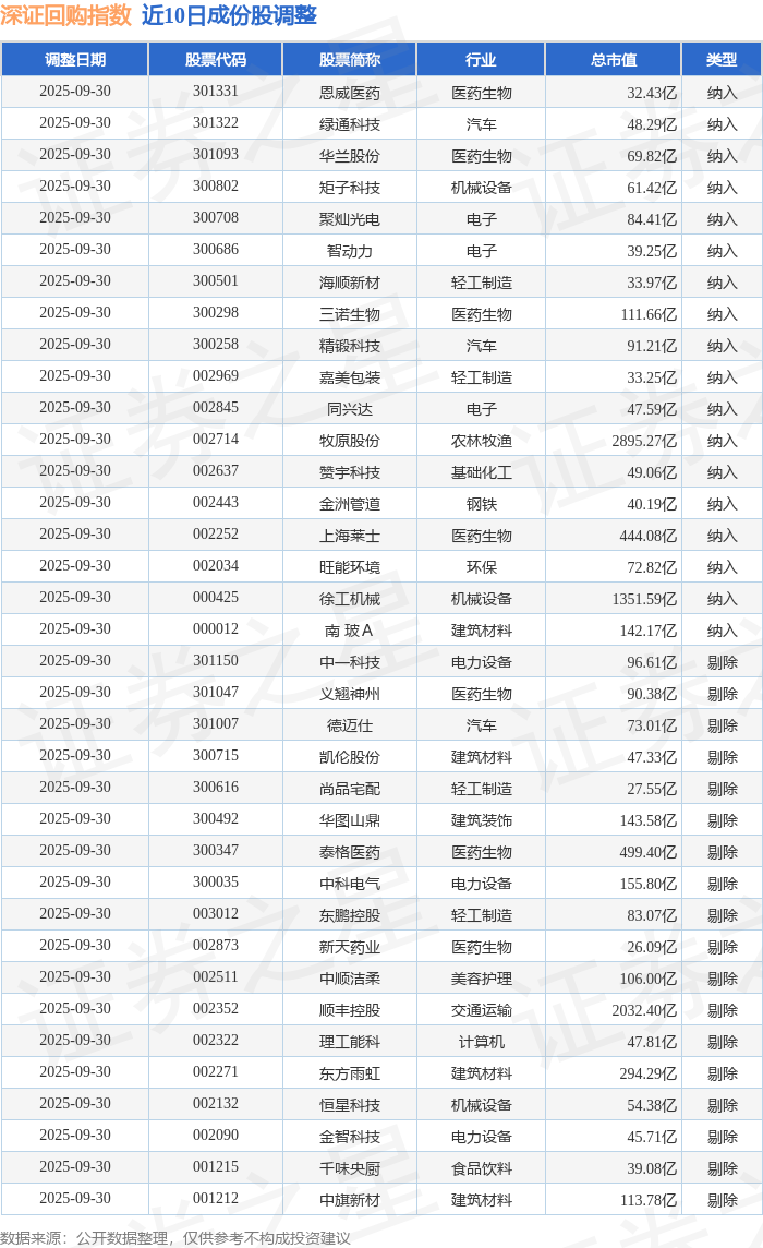 近10日内深证回购(970063)指数成份股做了调整,新纳入了18只股票,剔除了18只股票。