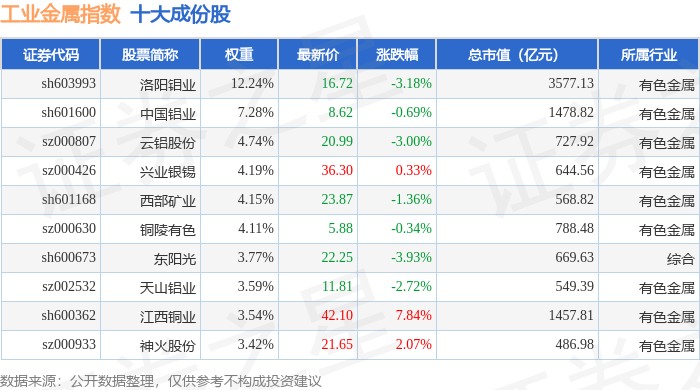证券之星消息,10月10日,工业金属(980043)指数报收于2687.05点,跌1.17%,成交877.92亿元,换手率3.81%。当日该指数成份股中,上涨的有15家,白银有色以9.96%的涨幅领涨,下跌的有32家,寒锐钴业以9.41%的跌幅领跌。
