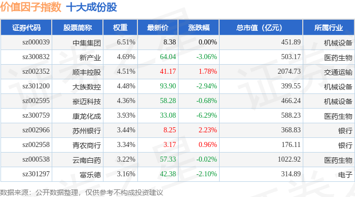 证券之星消息,10月10日,价值因子(980056)指数报收于2547.65点,跌0.82%,成交571.93亿元,换手率1.43%。当日该指数成份股中,上涨的有26家,许继电气以4.84%的涨幅领涨,下跌的有23家,上能电气以13.72%的跌幅领跌。