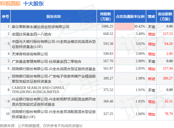 根据科锐国际2025年中报公布的十大股东详情如下: