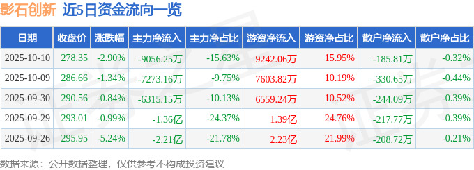 10月10日的资金流向数据方面,主力资金净流出9056.25万元,占总成交额15.63%,游资资金净流入9242.06万元,占总成交额15.95%,散户资金净流出185.81万元,占总成交额0.32%。