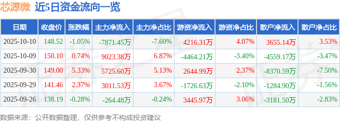 证券之星消息,截至2025年10月10日收盘,芯源微(688037)报收于148.52元,下跌1.05%,换手率3.44%,成交量6.94万手,成交额10.36亿元。