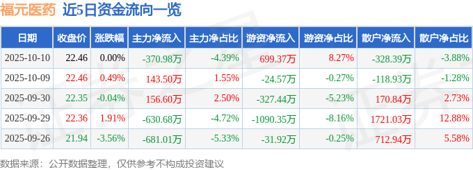 证券之星消息,截至2025年10月10日收盘,福元医药(601089)报收于22.46元,上涨0.0%,换手率0.79%,成交量3.77万手,成交额8458.54万元。