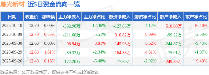 10月10日的资金流向数据方面,主力资金净流出382.98万元,占总成交额12.36%,游资资金净流出127.63万元,占总成交额4.12%,散户资金净流入510.6万元,占总成交额16.48%。