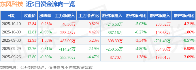 证券之星消息,截至2025年10月10日收盘,东风科技(600081)报收于12.84元,上涨0.23%,换手率0.69%,成交量3.82万手,成交额4901.73万元。