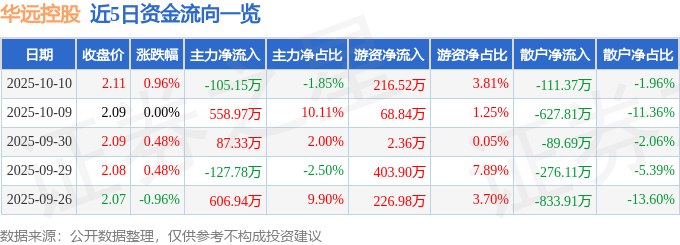 10月10日的资金流向数据方面,主力资金净流出105.15万元,占总成交额1.85%,游资资金净流入216.52万元,占总成交额3.81%,散户资金净流出111.37万元,占总成交额1.96%。