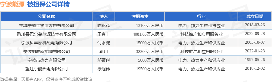 宁波能源10月9日披露9笔对外担保,被担保公司6家。对外担保明细如下表: