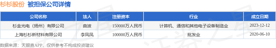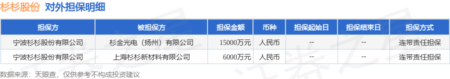 杉杉股份10月9日披露2笔对外担保,被担保公司2家。对外担保明细如下表: