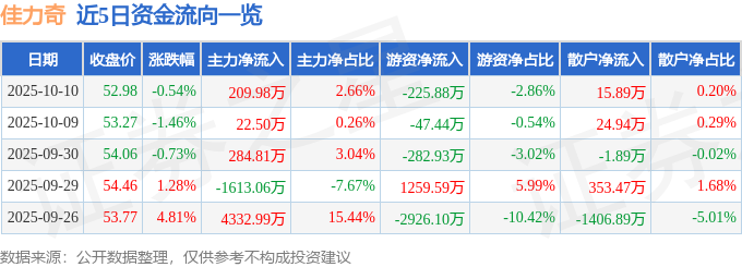 10月10日的资金流向数据方面,主力资金净流入209.98万元,占总成交额2.66%,游资资金净流出225.88万元,占总成交额2.86%,散户资金净流入15.89万元,占总成交额0.2%。