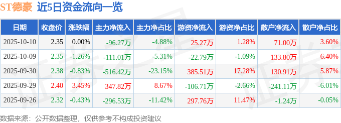 证券之星消息,截至2025年10月10日收盘,ST德豪(002005)报收于2.35元,上涨0.0%,换手率0.48%,成交量8.4万手,成交额1973.95万元。