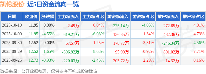 10月10日的资金流向数据方面,主力资金净流入2.49万元,占总成交额0.04%,游资资金净流出275.14万元,占总成交额4.05%,散户资金净流入272.65万元,占总成交额4.01%。