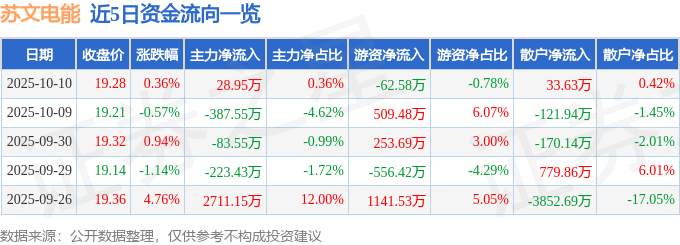 证券之星消息,截至2025年10月10日收盘,苏文电能(300982)报收于19.28元,上涨0.36%,换手率2.15%,成交量4.16万手,成交额8030.23万元。