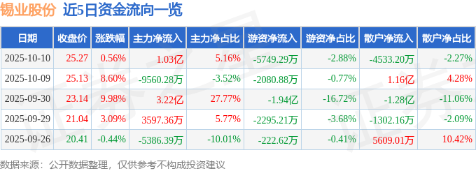 10月10日的资金流向数据方面,主力资金净流入1.03亿元,占总成交额5.16%,游资资金净流出5749.29万元,占总成交额2.88%,散户资金净流出4533.2万元,占总成交额2.27%。