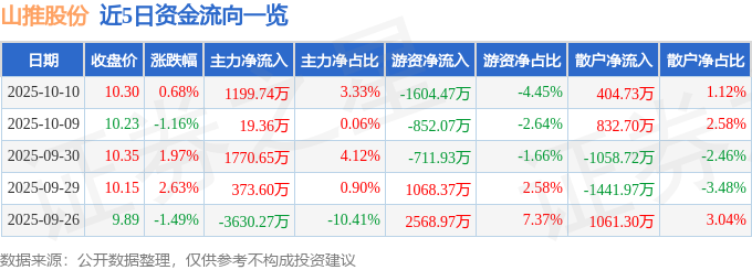 10月10日的资金流向数据方面,主力资金净流入1199.74万元,占总成交额3.33%,游资资金净流出1604.47万元,占总成交额4.45%,散户资金净流入404.73万元,占总成交额1.12%。