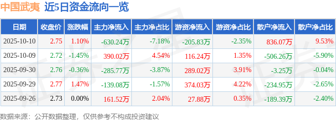 证券之星消息,截至2025年10月10日收盘,中国武夷(000797)报收于2.75元,上涨1.1%,换手率2.03%,成交量31.81万手,成交额8776.95万元。