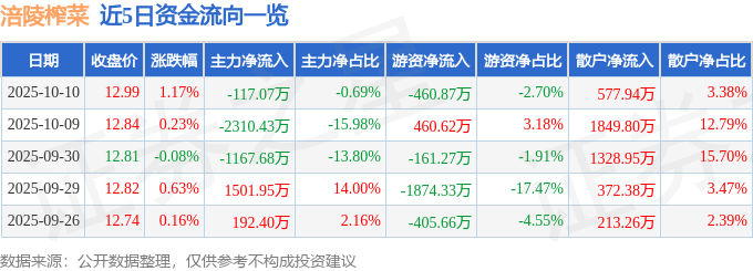 10月10日的资金流向数据方面,主力资金净流出117.07万元,占总成交额0.69%,游资资金净流出460.87万元,占总成交额2.7%,散户资金净流入577.94万元,占总成交额3.38%。
