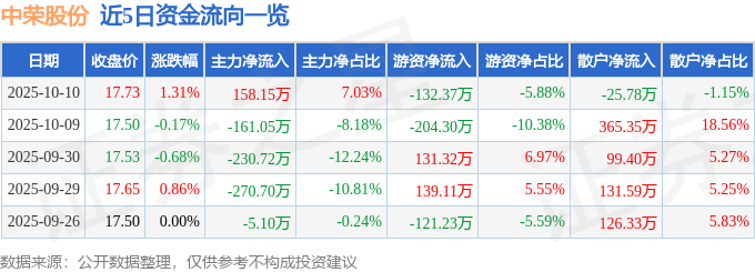 10月10日的资金流向数据方面,主力资金净流入158.15万元,占总成交额7.03%,游资资金净流出132.37万元,占总成交额5.88%,散户资金净流出25.78万元,占总成交额1.15%。