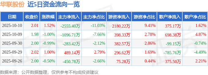证券之星消息,截至2025年10月10日收盘,华联股份(000882)报收于2.01元,上涨1.52%,换手率4.2%,成交量114.84万手,成交额2.32亿元。