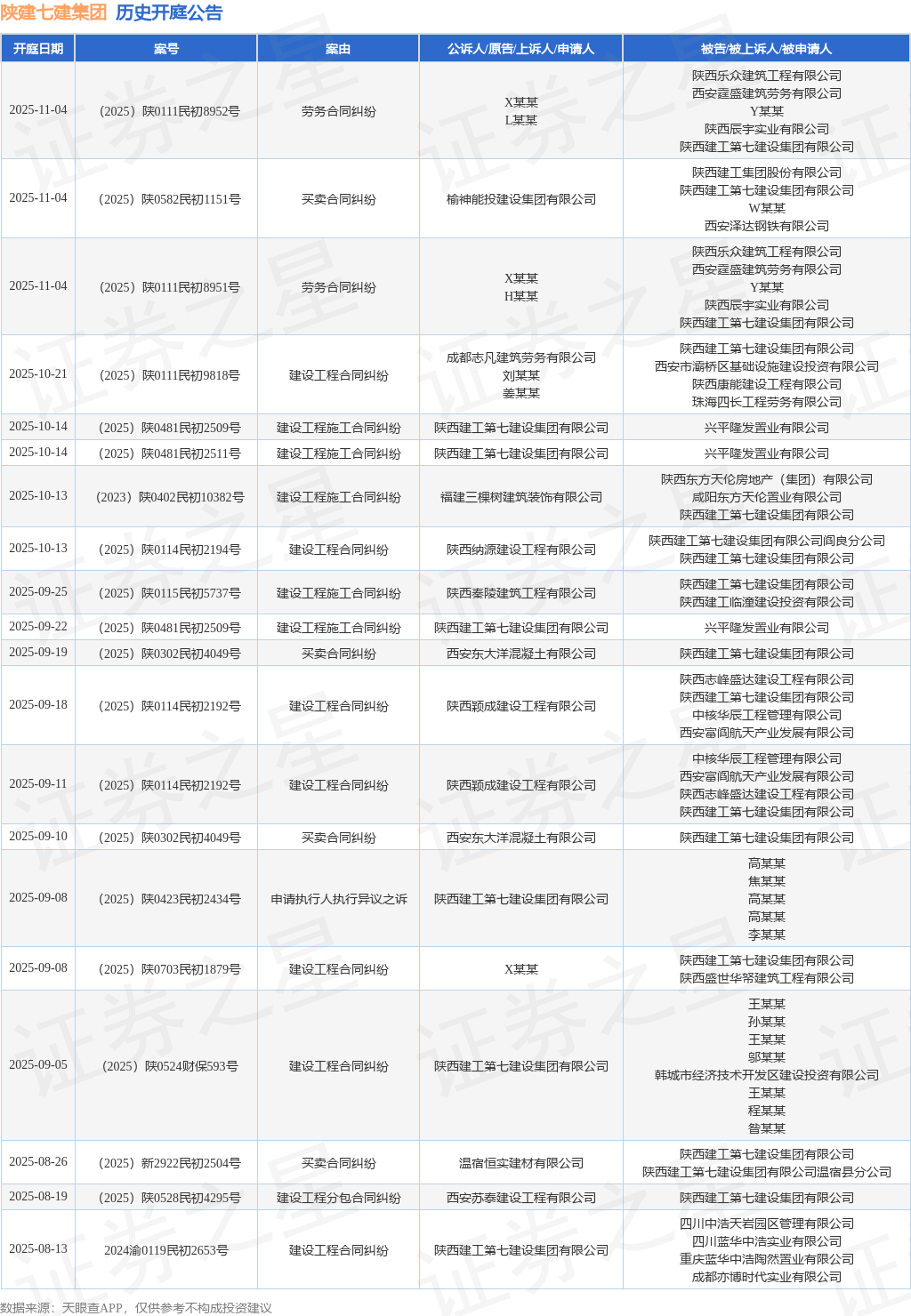 证券之星消息,根据天眼查APP显示,近日公布了一则陕西建工第七建设集团有限公司作为被告/被上诉人的开庭公告,详细内容如下: