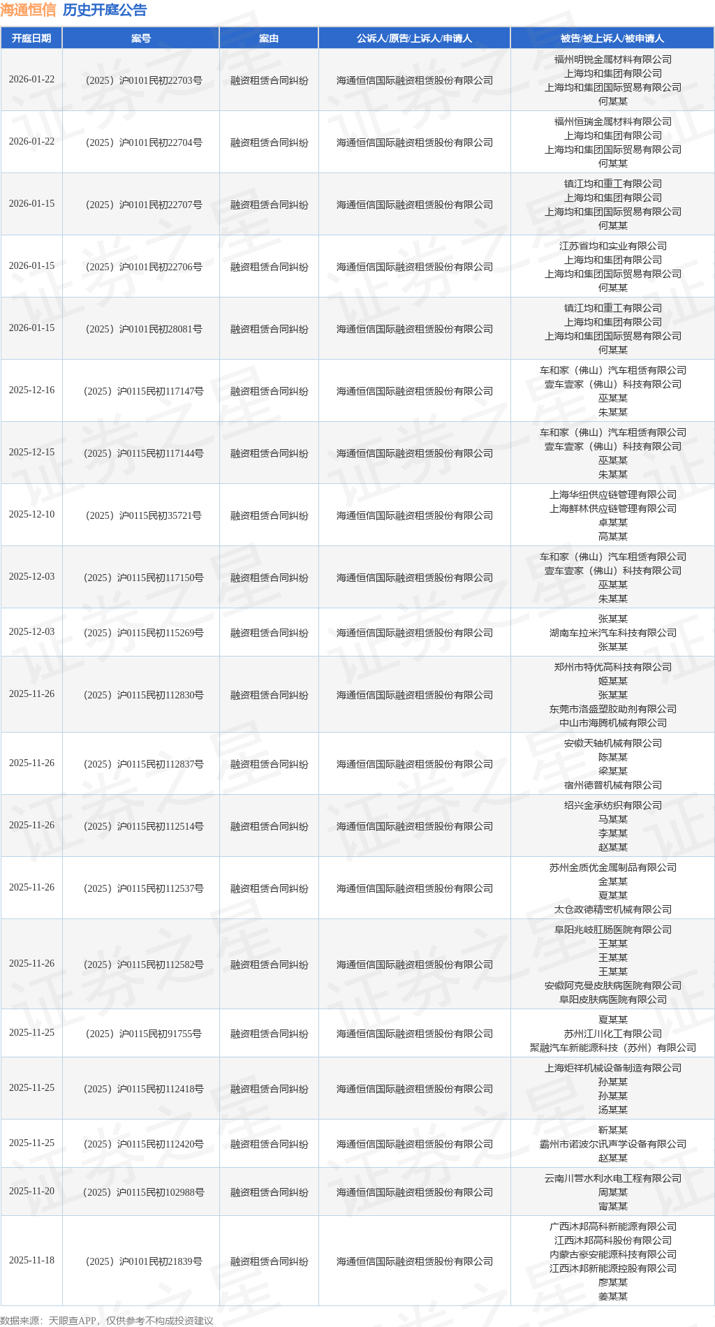 证券之星消息,根据天眼查APP显示,近日公布了一则海通恒信国际融资租赁股份有限公司作为被告/被上诉人的开庭公告,详细内容如下:
